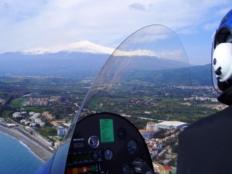 In gyroplanes there is no power transmission to the rotor during flight, it is easy to see this: gyroplanes do not have anti-torque devices as tail rotor to balance main power-driven rotor torque. Lift is given by autorotation granted by the air flowing up through the blades. This condition is allowed by the degree of liberty of movement of the rotor head – and so of the rotor disc – along lateral axis; talking of Magni’s gyroplanes, this excursion is from 0° (horizontally) to 18° towards the rear of the gyroplane. This laying allows the correct passing through of the airflow in all allowed flight condition within gyroplane flight envelope. Pilot’s authority on lateral axis is granted by the use of the stick. Due to the lack of transmission of power the gyroplane can’t keep stationary hovering as helicopters can. As a matter of fact, when speed decrease with nose up attitude, the airflow through the rotor decrease so rotor rpm also slowly but constantly decrease causing a reduction in lift. When rotor rpm are under a certain level – this value is due to weather conditions and weight of the gyro – the gyro will start sinking (2-4 m/s with engine; up to 10 m/s without engine) steeply or vertically if the advancing speed has got to 0 due to the loss of lift. While loosing height the pilot keeps authority on all flight controls and the rotor will be kept “fed” by the airflow from bottom upward generated by the sinking movement. So as soon as descent speed is enough the rotor will keep a number of turns enough for a constant speed descent.